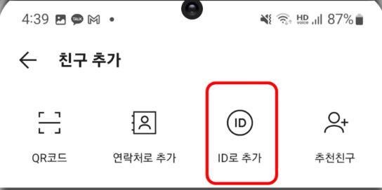 QR코드, 연락처로 추가, ID로 추가, 추천 친구가 나올 텐데요.